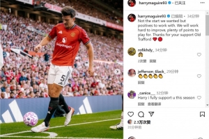 马奎尔社媒晒出比赛照片,并写道:“这不是我们想要的开局,但也有积极的因素可以汲取,我们会努力改进,还有大量的积分可以争取。感谢大家在老特拉福德的支持。”
