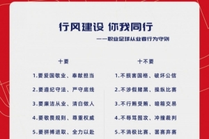 让我们携手努力,恪守“十要十不要”,从自身做起,以良好言行共筑职业足球新形象,为中国足球健康发展贡献力量!