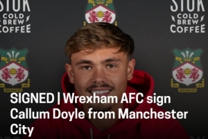 雷克瑟姆官方:曼城21岁后卫多伊尔加盟,据悉转会费750万镑