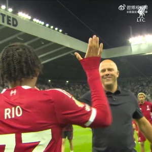赛后,斯洛特把打进绝杀球的恩古莫哈“推”向利物浦球迷,让他尽情享受球迷的欢呼❤️