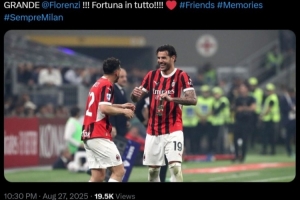弗洛伦齐的前队友特奥更新社媒,晒出两人共同效力米兰时的赛场合照,为他送上祝福。
