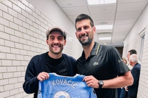 科瓦西奇因为此前接受手术,目前仍然在恢复当中,他也借此机会前往美国观看美网,与德约科维奇合影并将自己的曼城球衣赠送给他。