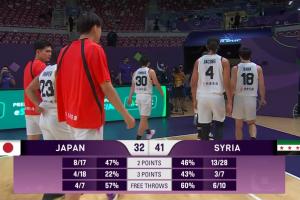 在正在进行的日本男篮对阵叙利亚男篮的比赛,半场结束,日本男篮32-41落后叙利亚男篮9分。