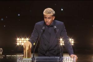 体育资讯09月23日讯 2025年金球奖颁奖典礼,亚马尔连续第二年获得科帕奖,他也发表了获奖感言。